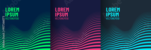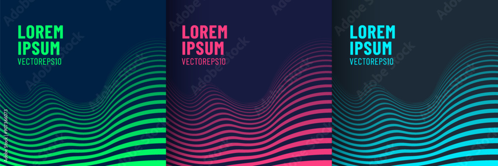 The watermark will not be included on Canvas Print.: Set of abstract pink, green or blue stripe lines pattern on dark background in perspective view - fut