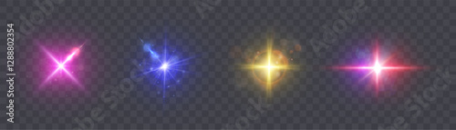Set of bright colorful vector glare and transparent light refraction effects - vector illustration - Canvas Print