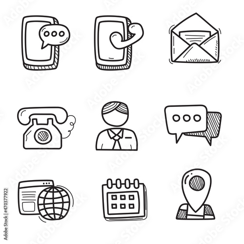 The watermark will not be included on Canvas Print.: Set of contact icon in doodle drawing style isolated on white background