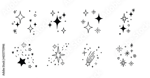 The watermark will not be included on Canvas Print.: Set of cute sparkle doodle element vector - hand drawn doodle style collection of different sparkle,