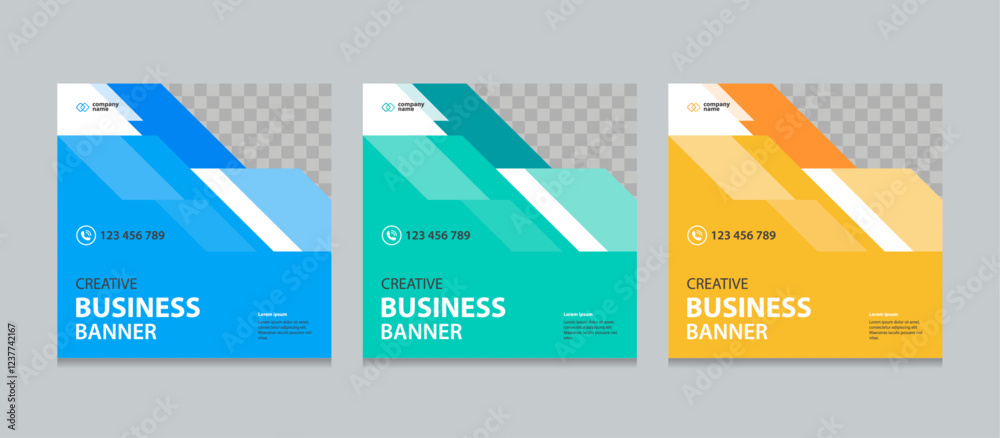 The watermark will not be included on Canvas Print.: Set of editable square business web banner design template - suitable for social media post, instagra