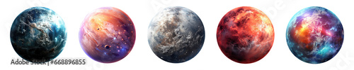 The watermark will not be included on Canvas Print.: Set of fantasy planets isolated on transparent background -