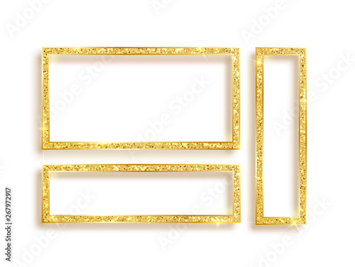 Canvas Prints set of gold glitter frames with sparkles on white background.
