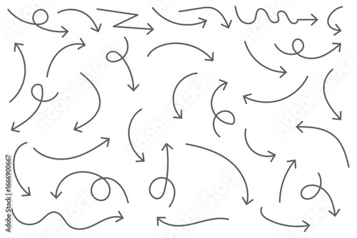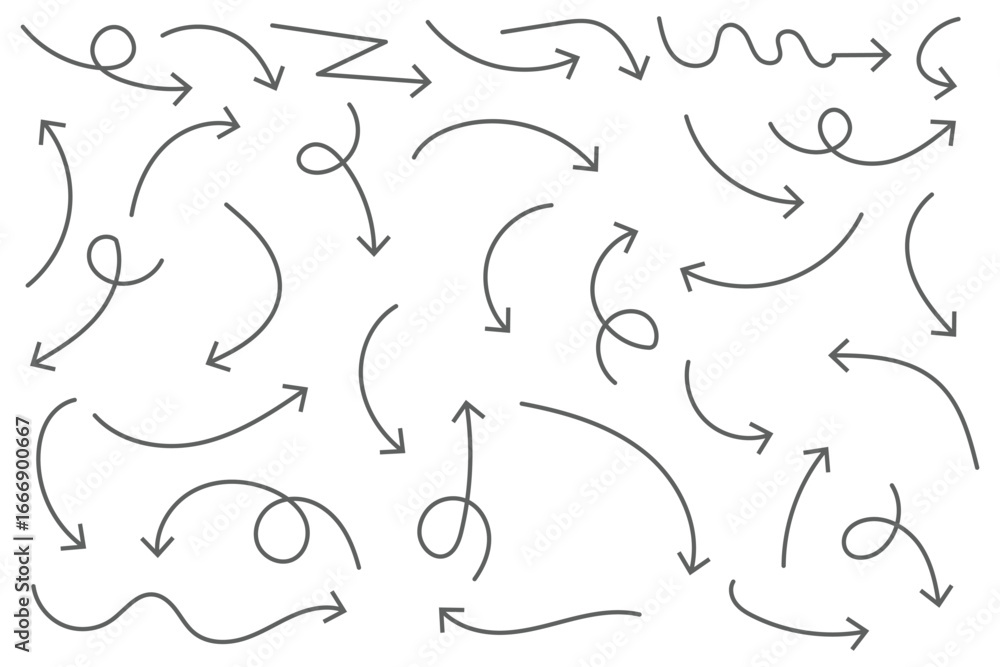 The watermark will not be included on Canvas Print.: Set of hand drawn arrows - simple arrows collection isolated on white background - arrow mark icons ve
