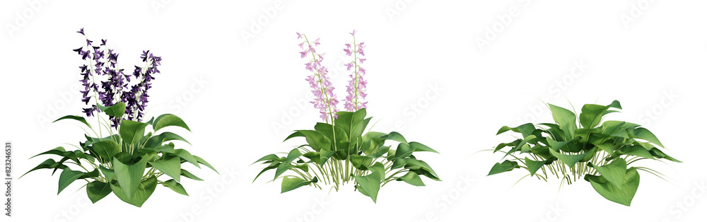 The watermark will not be included on Canvas Print.: Set of hosta (plantain lily) plant isolated on transparent background - 3d render -