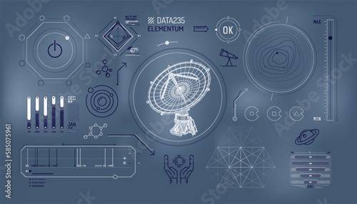 The watermark will not be included on Canvas Print.: Set of infographic elements about radio astronomy and space observation -