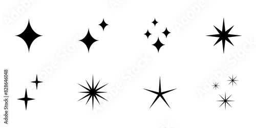 Canvas Print : Set of isolated black sparkling stars on white background - simple decorative sparkles for card orna