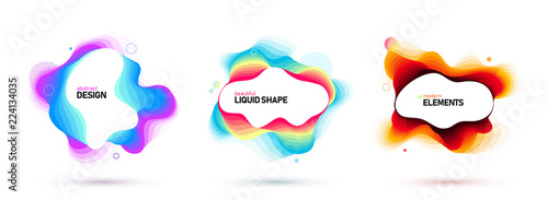 The watermark will not be included on Canvas Print.: Set of liquid color abstract geometric shapes - fluid gradient elements for minimal banner, logo, soc