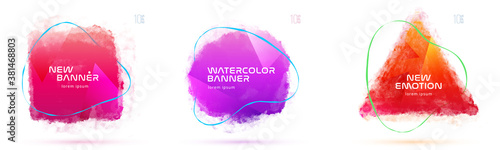The watermark will not be included on Canvas Print.: Set of liquid watercolor abstract geometric shapes - fluid gradient elements for minimal banner, logo