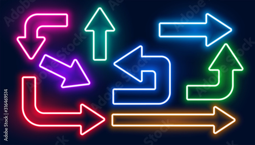 The watermark will not be included on Canvas Print.: Set of neon glowing colorful arrows design