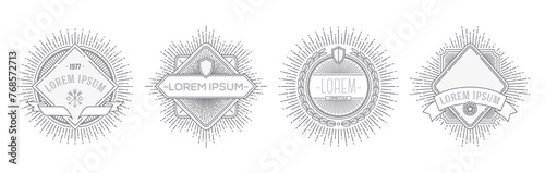 The watermark will not be included on Canvas Print.: Set of outline heraldic emblems and labels with sunburst rays - vector illustration -