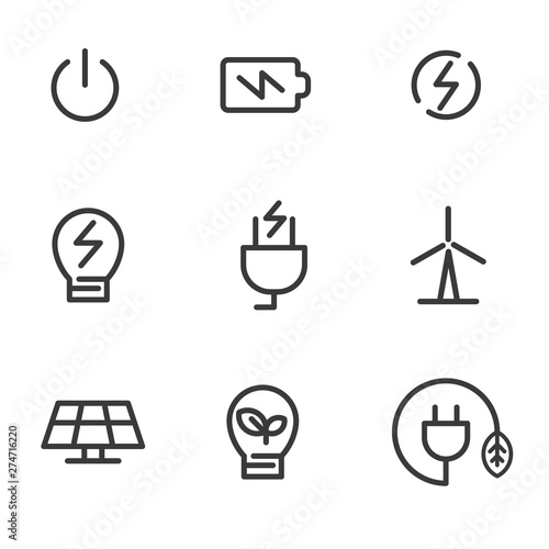 The watermark will not be included on Canvas Print.: Set of power and energy related icon line design