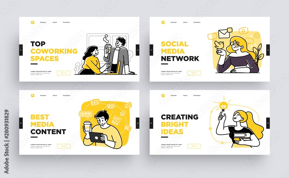 The watermark will not be included on Canvas Print.: Set of presentation slide templates or landing page websites design - business concept illustrations -