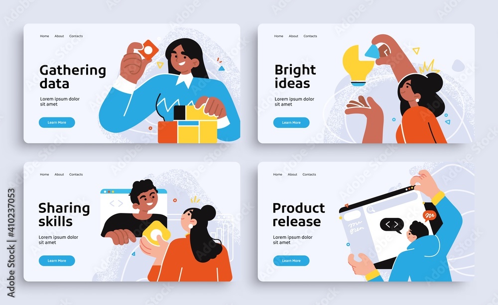 The watermark will not be included on Canvas Print.: Set of presentation slide templates or landing page websites design - business concept illustrations -