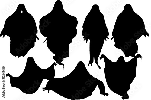 The watermark will not be included on Canvas Print.: Set of realistic ghosts isolated on transparent - vector illustration of 3d symbols of halloween -