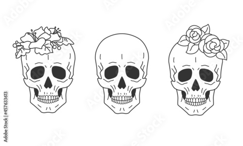 Canvas Prints set of skulls executed in a linear fashion. some of them are decorated with flowers.