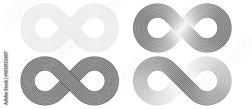 The watermark will not be included on Canvas Print.: Set of spiral with lines as abstract infinity symbol - black shapes on a white background -