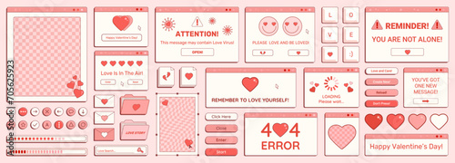 Canvas Prints set of y2k valentine day retro computer windows, buttons, messages and other romantic interface elem