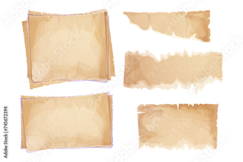 Canvas Prints set parchment paper, torn pieces, old sheets , textured empty notes isolated on white background. ga