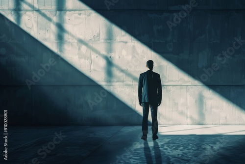 The watermark will not be included on Canvas Print.: Shadowed figure of a businessman symbolizing progress and victory -