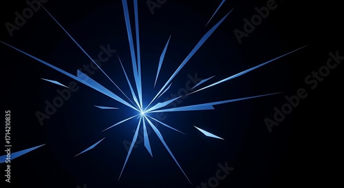 The watermark will not be included on Canvas Print.: Sharp blue light rays bursting from center on black background image photo