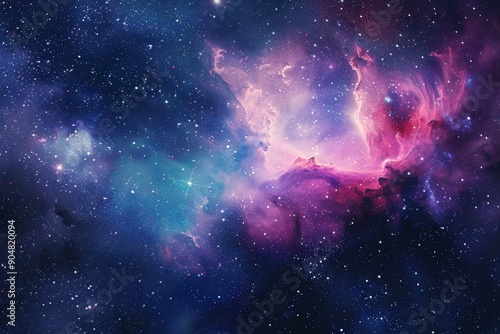 The watermark will not be included on Canvas Print.: Shimmering nebulae and cosmic dust illuminate the vastness of space, featuring shimmering nebulae an