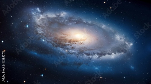 The watermark will not be included on Canvas Print.: Shiny misty galaxy with luminous core image - beautiful nebula of sparkling gas in space photography