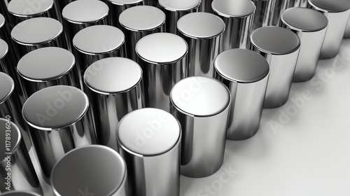 The watermark will not be included on Canvas Print.: Shiny silver cylinders arranged in rows -