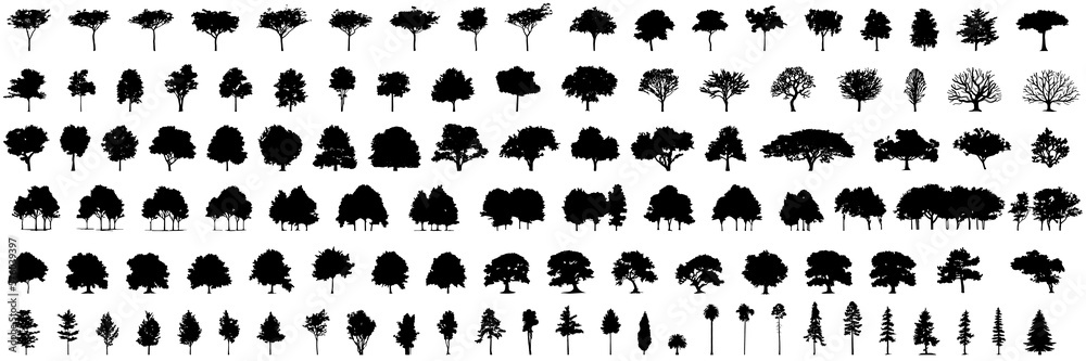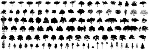 Canvas Print : Silhouette tree line drawing set, side view, set of graphics trees elements outline symbol for archi