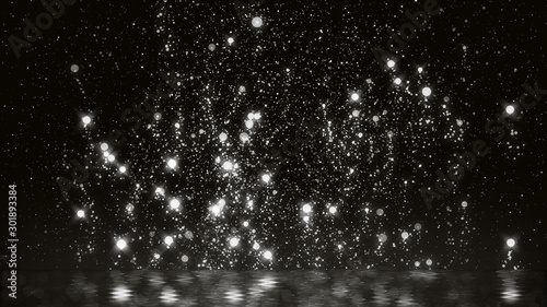 The watermark will not be included on Canvas Print.: Silver white particle rising floating around abstract glittering background festive season happy new