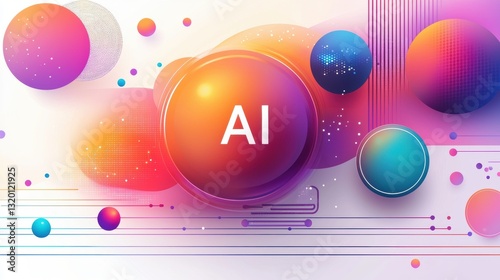 The watermark will not be included on Canvas Print.: Sleek and modern colorful banner featuring ai text surrounded by vibrant geometric shapes and abstra