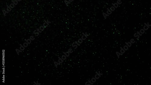 The watermark will not be included on Canvas Print.: Small green colored fireflies dots random movement flying on black looped motion copy space backgrou
