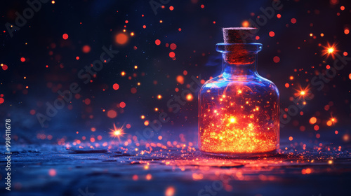 Canvas Prints small potion bottle glowing softly with little stars, creating magical atmosphere. enchanting light  - Canvas Prints Canvas Prints small potion bottle glowing softly with little stars, creating magical atmosphere. enchanting light - Canvas Prints