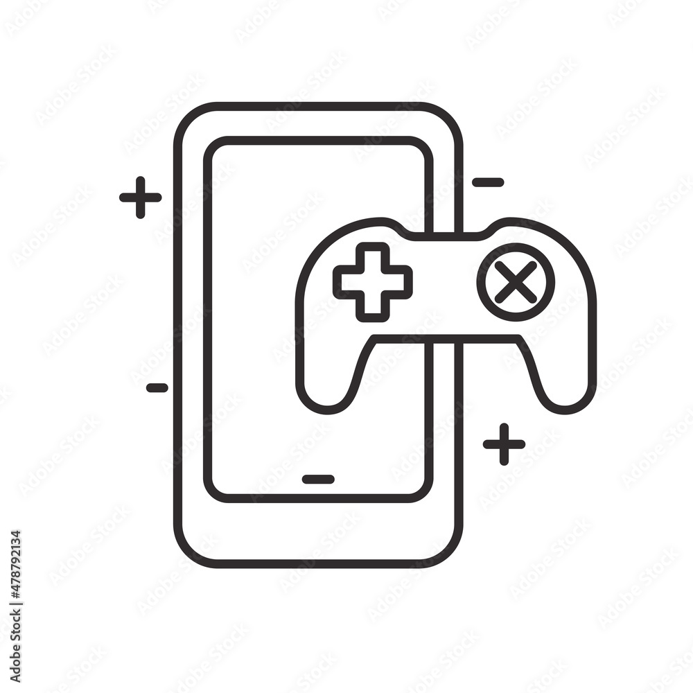 The watermark will not be included on Canvas Print.: Smartphone and joystick vector illustration with simple line design isolated on white background -