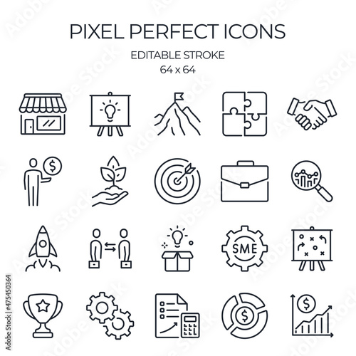 The watermark will not be included on Canvas Print.: Sme concept small and medium sized enterprises related editable stroke outline icon isolated on whit