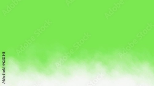 The watermark will not be included on Canvas Print.: Smoke in slow motion - horizontally moving white fog - smoke clouds fog overlay moving on green backgr
