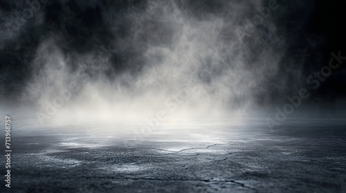 The watermark will not be included on Canvas Print.: Smoke on cement floor with defocused fog in halloween abstract background