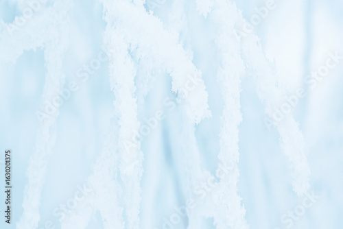 Canvas Prints snow and rime ice on the branches of bushes. trees covered with hoarfrost. plants in the park are co