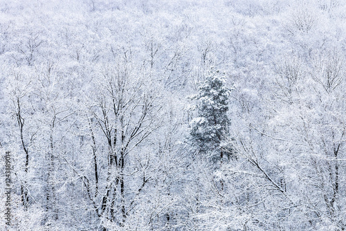Canvas Prints snow-covered trees in forest of park in snowfall