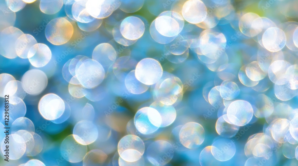 The watermark will not be included on Canvas Print.: Soft blue bokeh lights blend to form a gentle, abstract background perfect for creative projects or