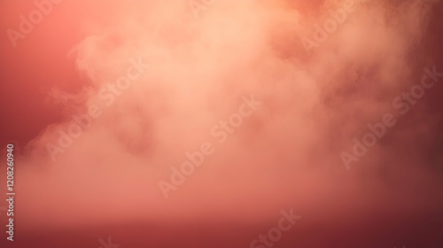 The watermark will not be included on Canvas Print.: Soft fog rolling gently across a muted red backdrop, with diffused lighting to highlight texture