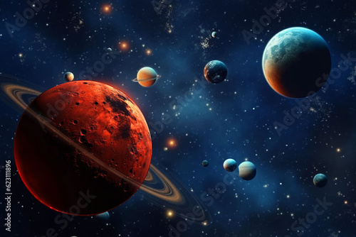 The watermark will not be included on Canvas Print.: Space, planets and armageddon in solar system, galaxy and universe with jupiter, mars and pluto - ai