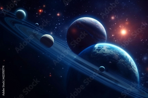The watermark will not be included on Canvas Print.: Space, planets and night in galaxy, solar system and universe with jupiter, mars and pluto science -