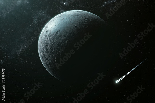 The watermark will not be included on Canvas Print.: Space and planet background - planets surface with craters, stars and comets in dark space - vector il