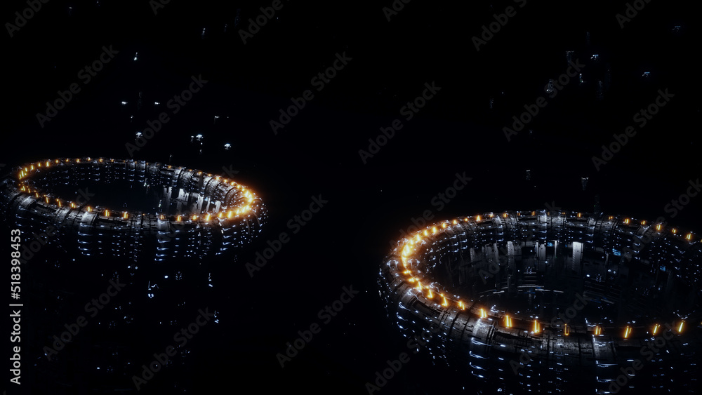 The watermark will not be included on Canvas Print.: Space futuristic base with ships traffic - futuristic concept - 3d rendering -