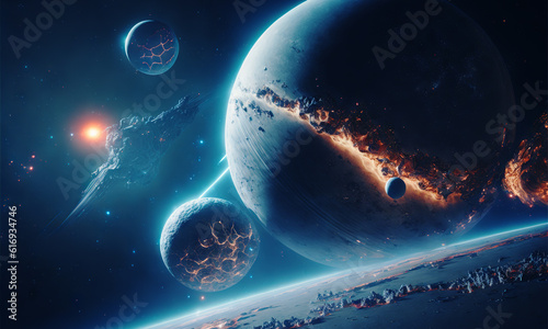 The watermark will not be included on Canvas Print.: Space planets background - distant planetscape in cosmos with exoplanets - concept art generative ai