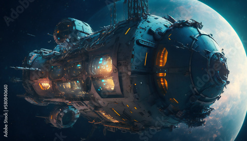 Canvas Prints space station in outer space - space wallpaper - generative ai