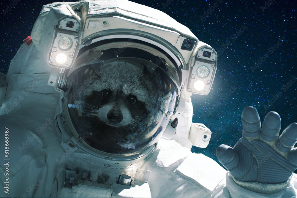 Canvas Prints spaceman raccoon in a spacesuit waves his hand. animal in outer space, concept - Canvas Prints Canvas Prints spaceman raccoon in a spacesuit waves his hand. animal in outer space, concept - Canvas Prints