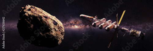 Canvas Prints spaceship approaching asteroid, dwarf planet mission, deep space exploration
