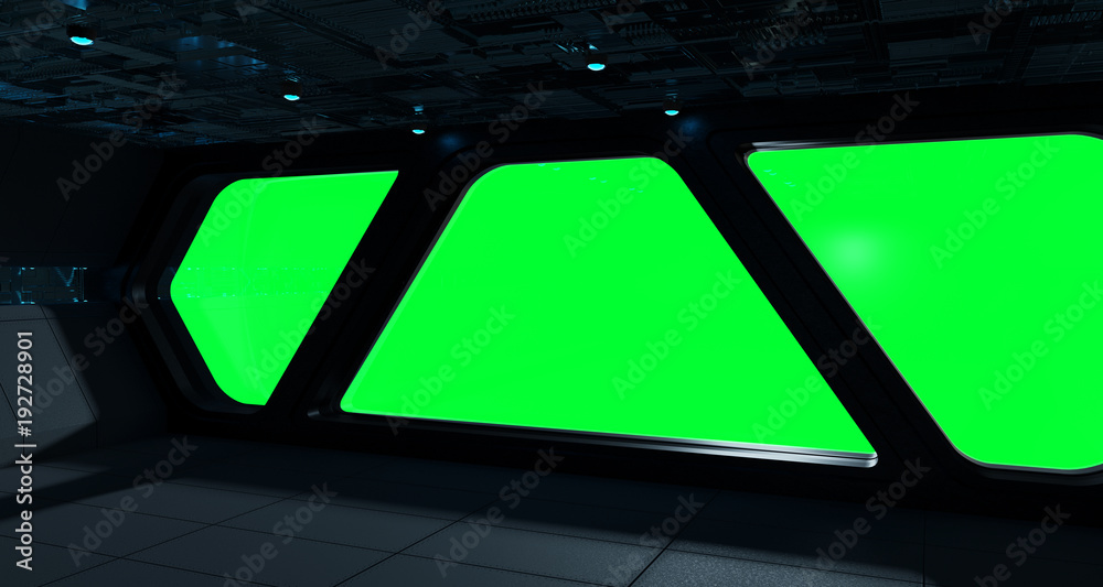 The watermark will not be included on Canvas Print.: Spaceship futuristic interior with window view